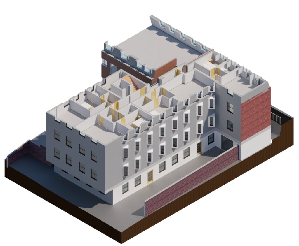 The project required a thorough structural assessment, including multiple surveys and investigations, to evaluate the existing building’s capacity to support two additional storeys. Using data gathered from the site investigations, we developed a detailed engineering model that facilitated the design of a new steel frame structure. This approach ensured the proposed architectural layout was fully supported while maintaining long-term structural integrity.